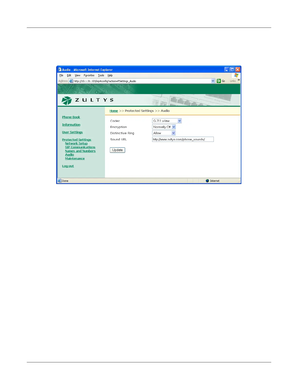 Sound URL. This setting specifies the location of WAV files that are used for custom ring tones.