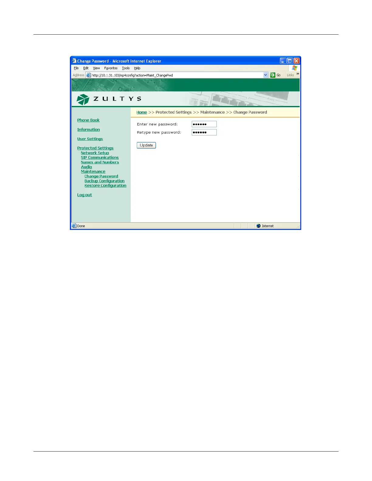 Figure E-22 Protected Settings – Password panel