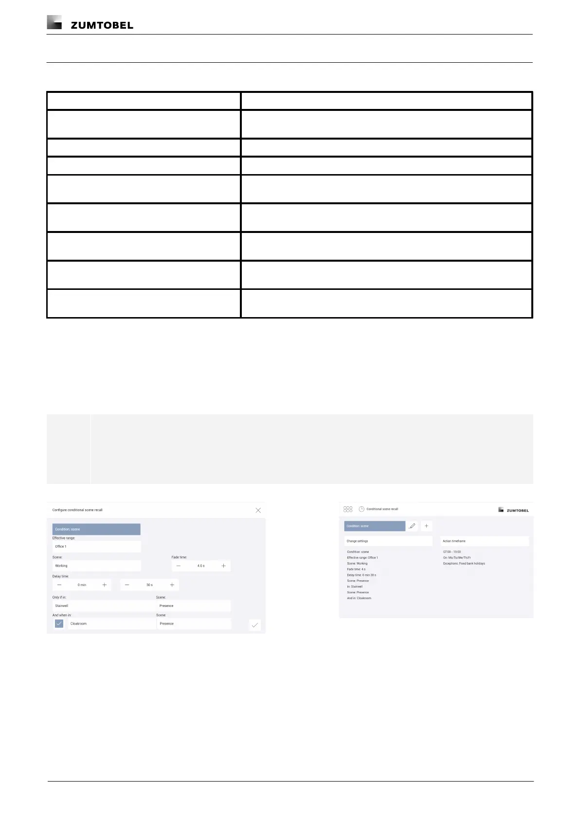 Table 62: Configuration options – conditional scene recall with condition “scene”
