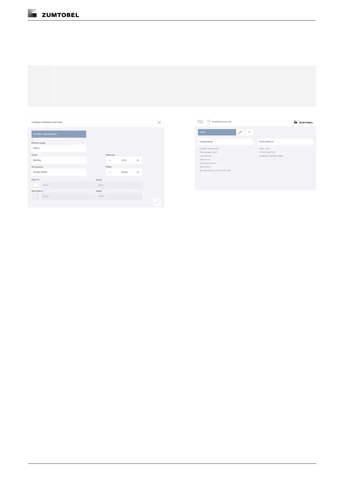Path: App overview > Conditional scene recall > Action timeframe
