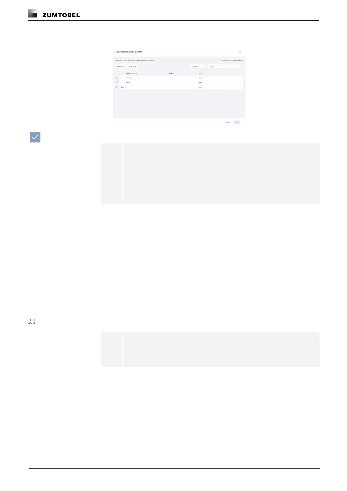 ÜThe Assign rooms/groups/zones view is displayed.