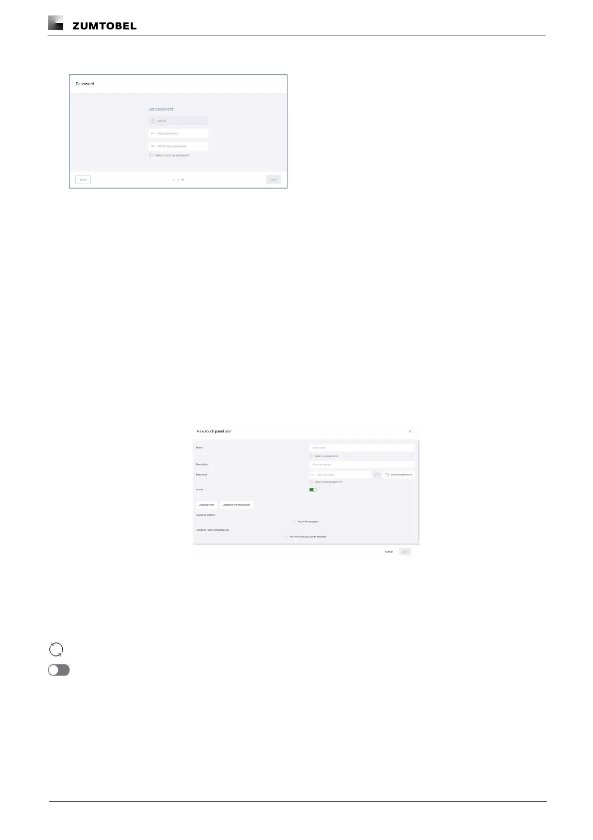 Unlike with the user, the administrator sets the password for the touch panel user. This is not a one-time