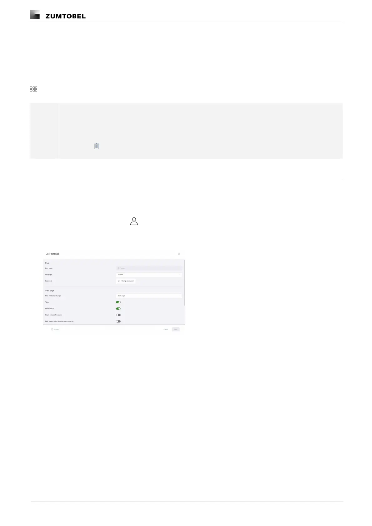 ÜThe User settings view is displayed.