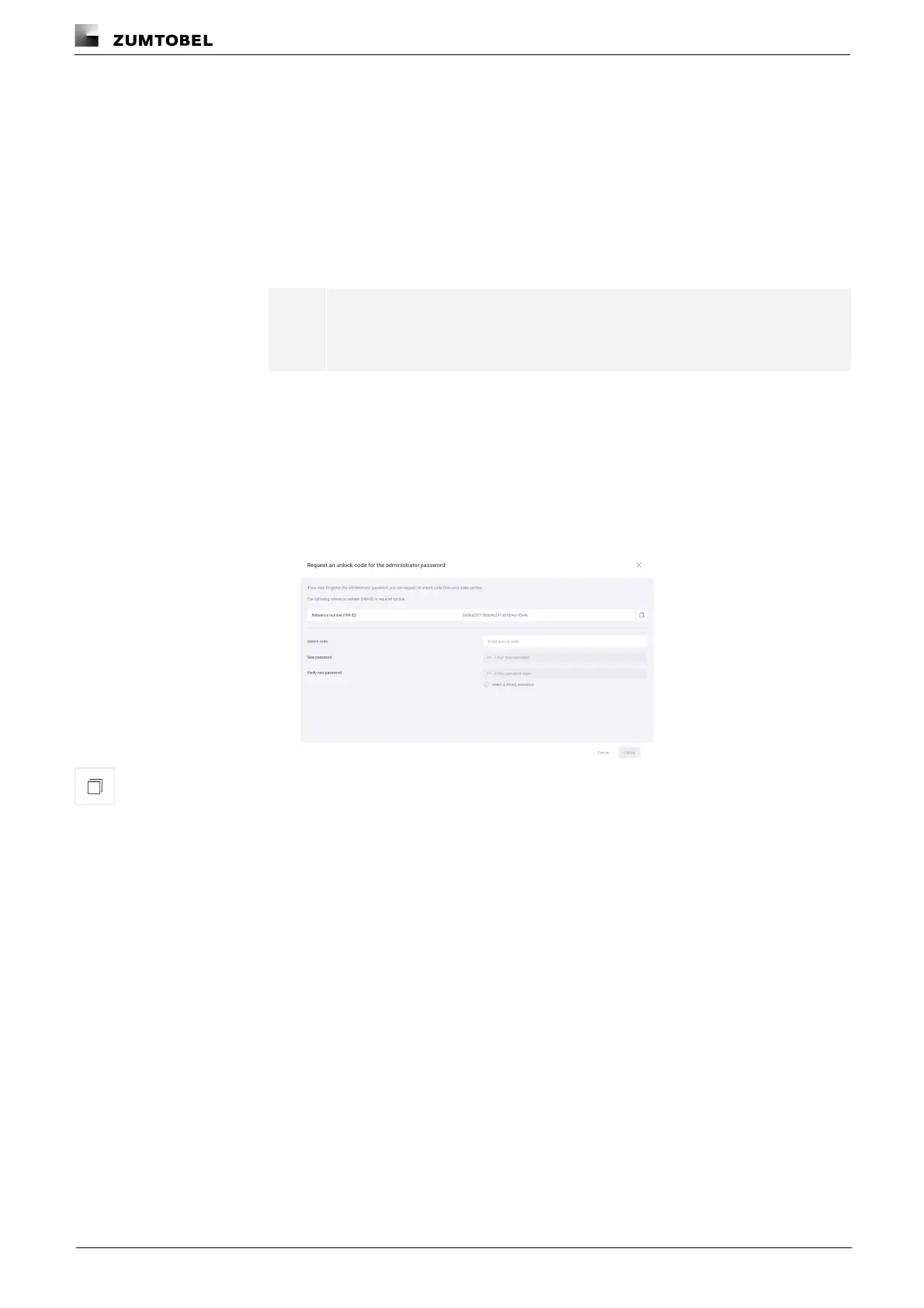 If the administrator forgets the password, it can be reset using an unlock code. The unlock code can be