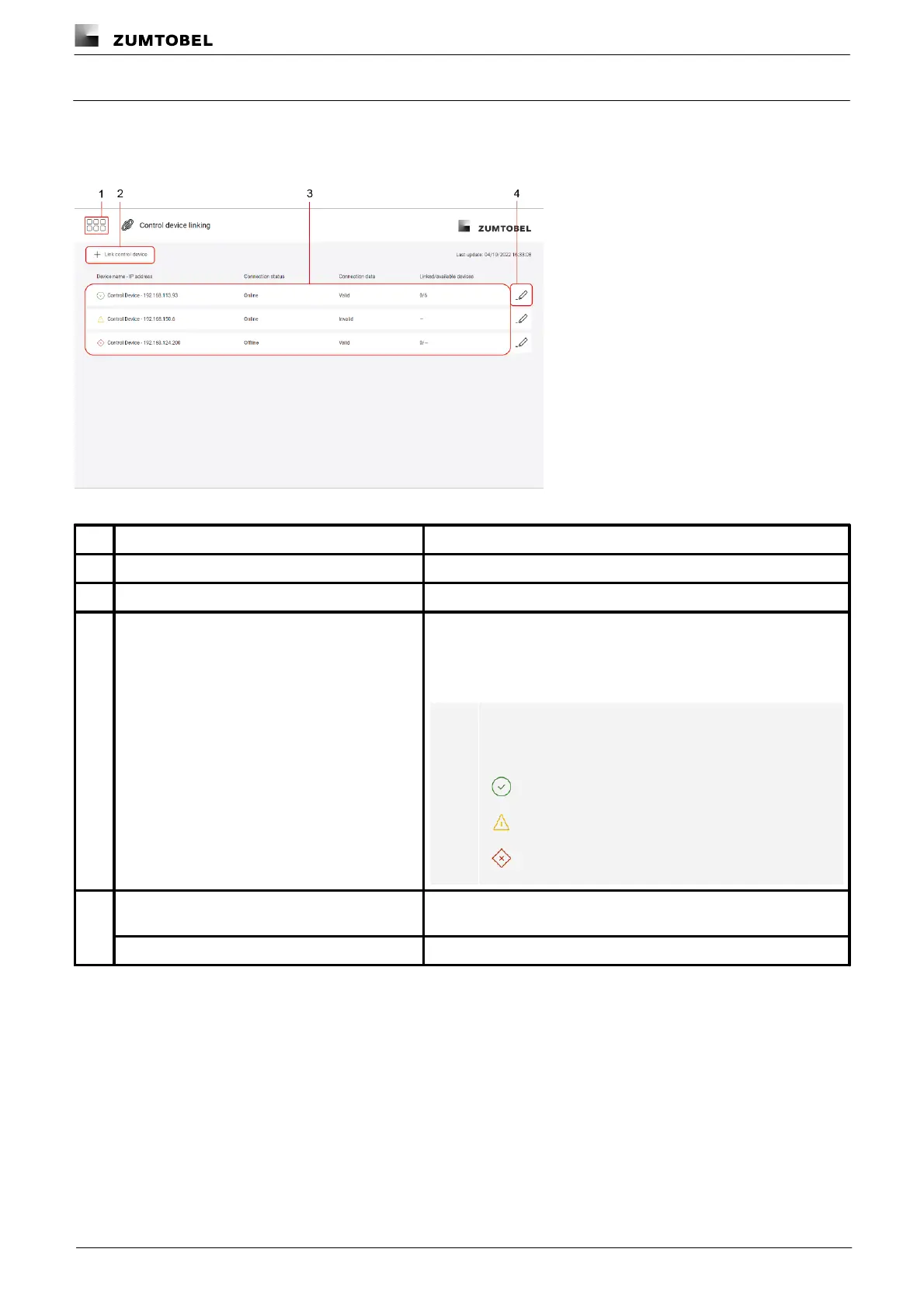 Table 75:Functions in the “Control device linking” app