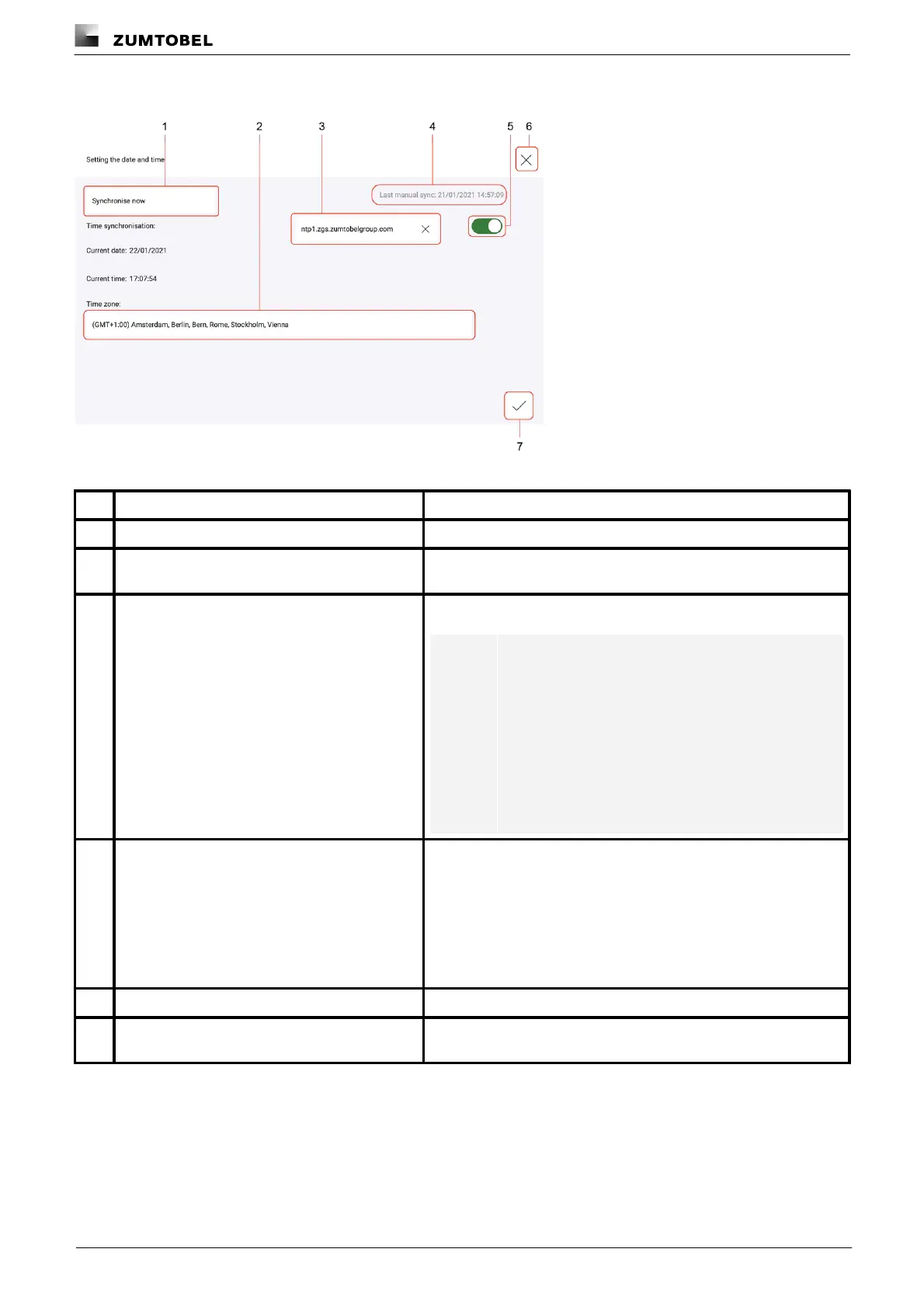 Figure 12: Functions in the “Date and time” app when time synchronisation is enabled
