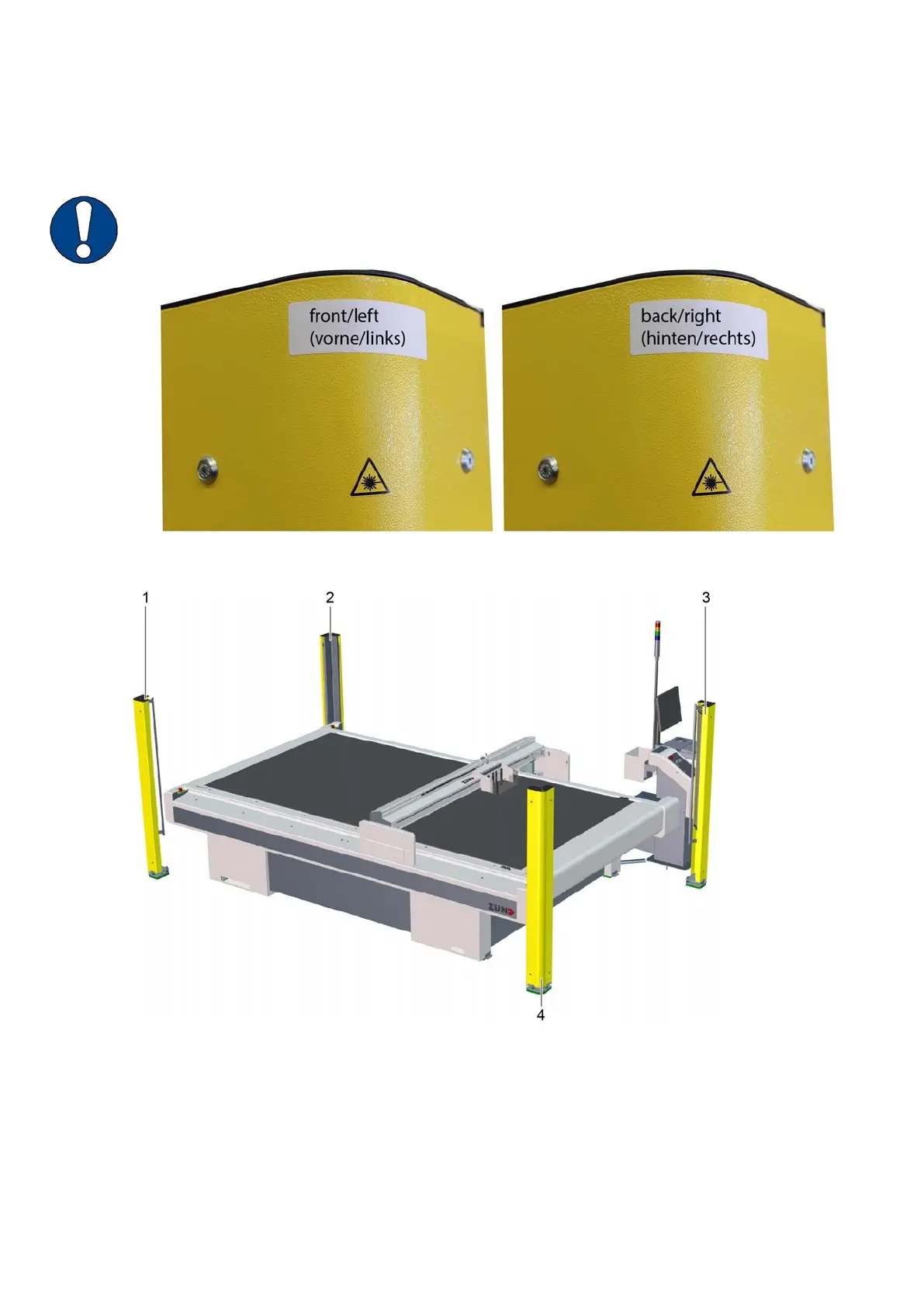 1 Rear/left pillar (mirror) 3 Front/left pillar (mirror)
