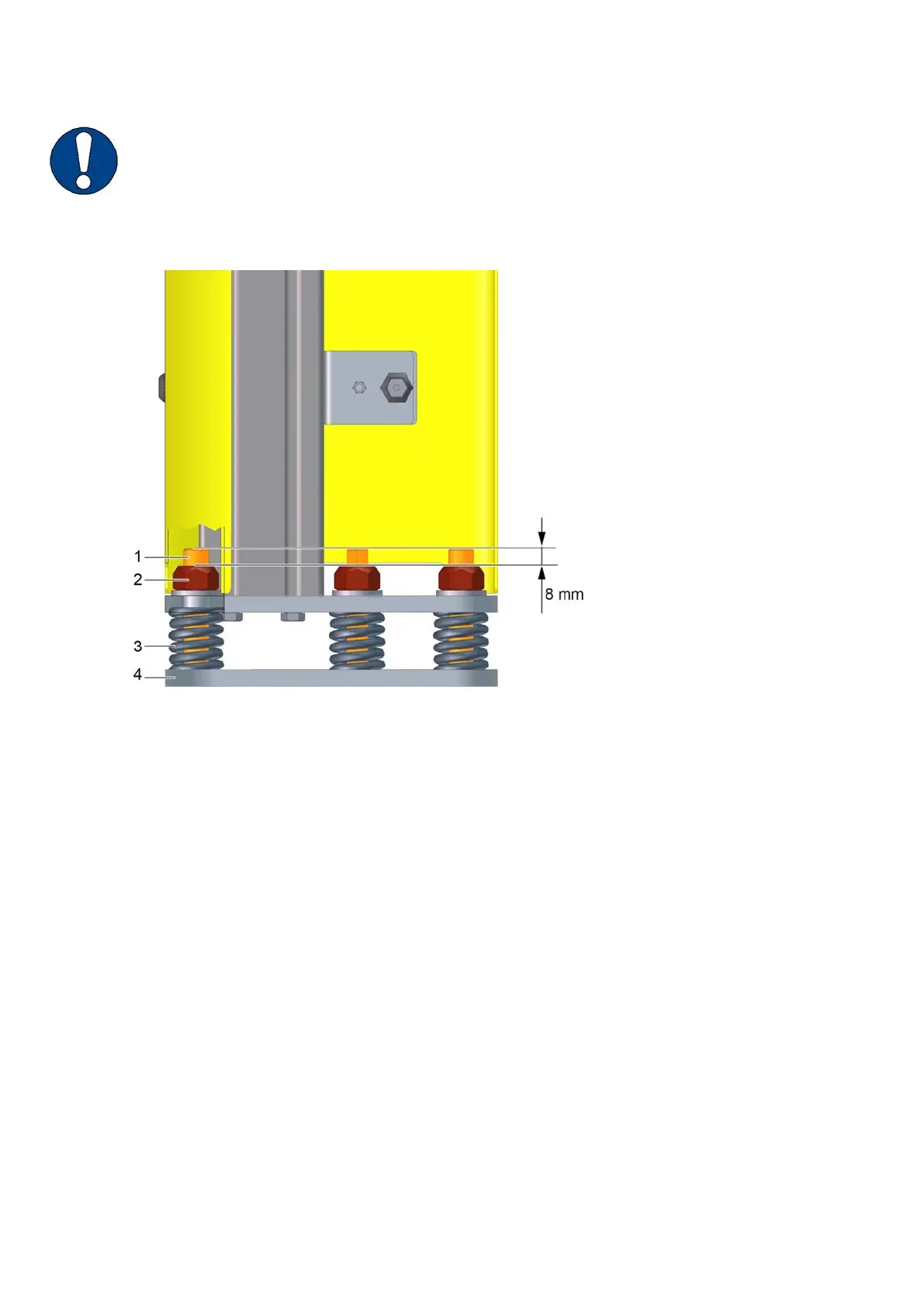 C Tighten the nuts until at least 8 mm of the thread protrudes (3x).