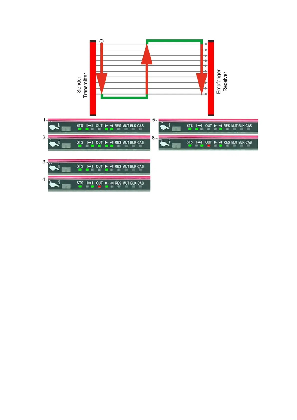 2 Receiver without interruption 5 Bottom transmitter interrupted