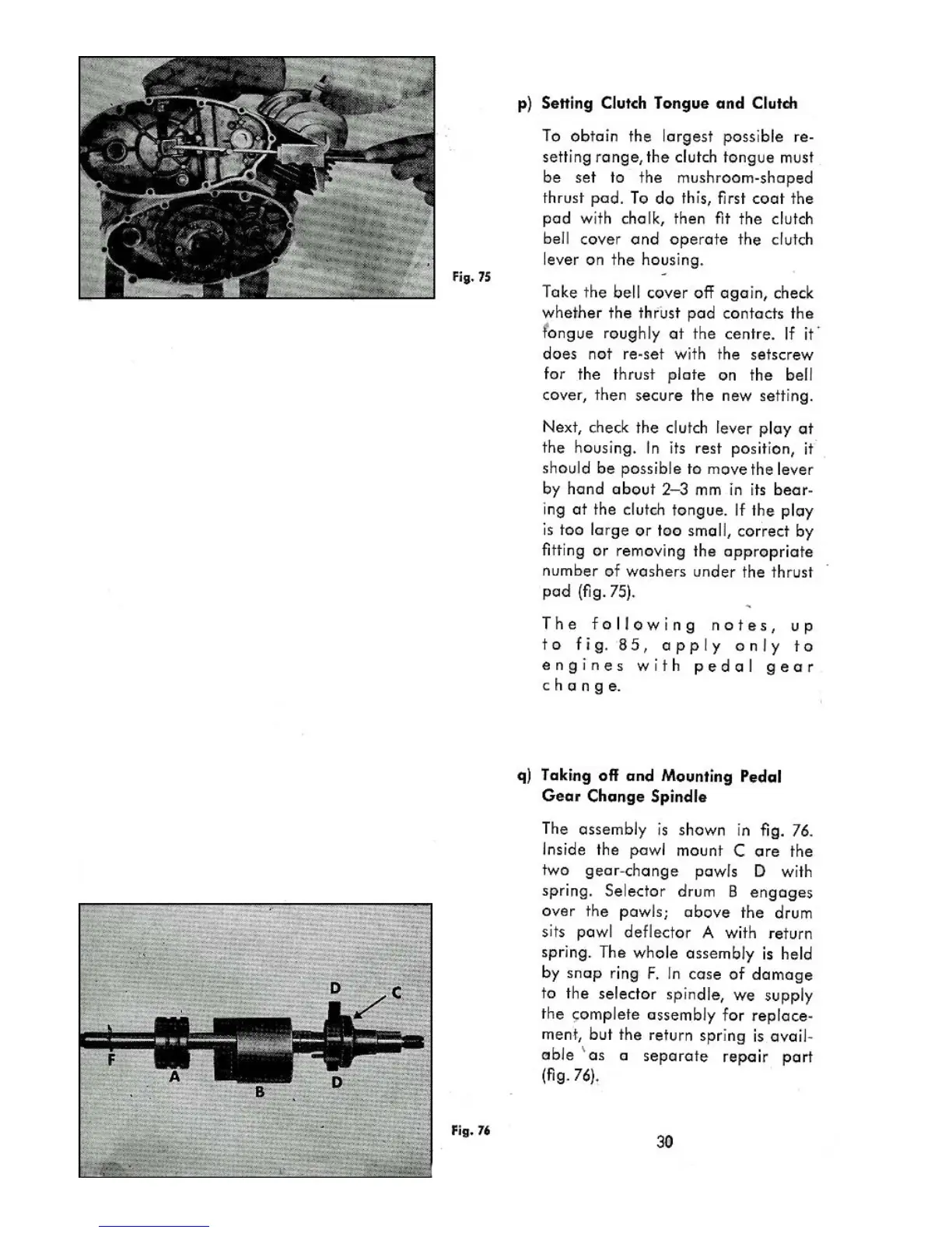 Zundapp 100 cc - Setting Clutch Tongue and Clutch; Taking off and Mounting Pedal Gear Change Spindle