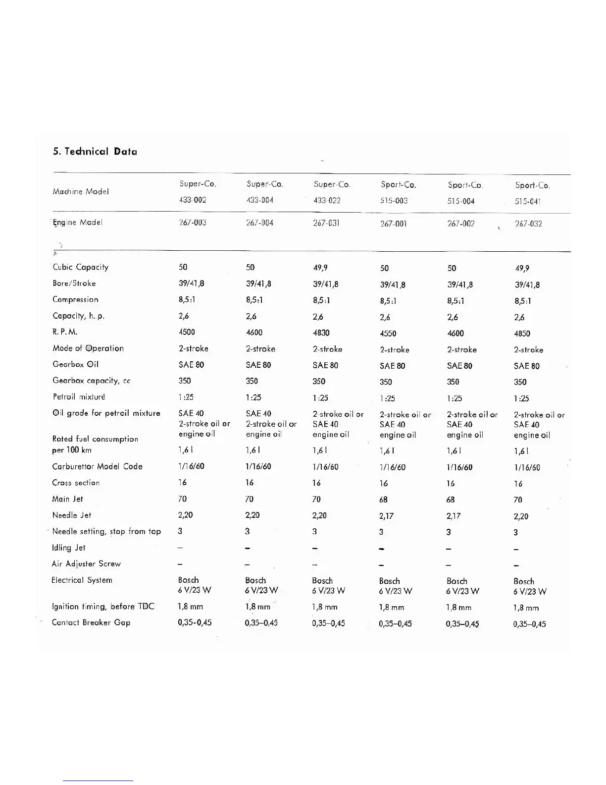 Zundapp 100 cc - Technical Data