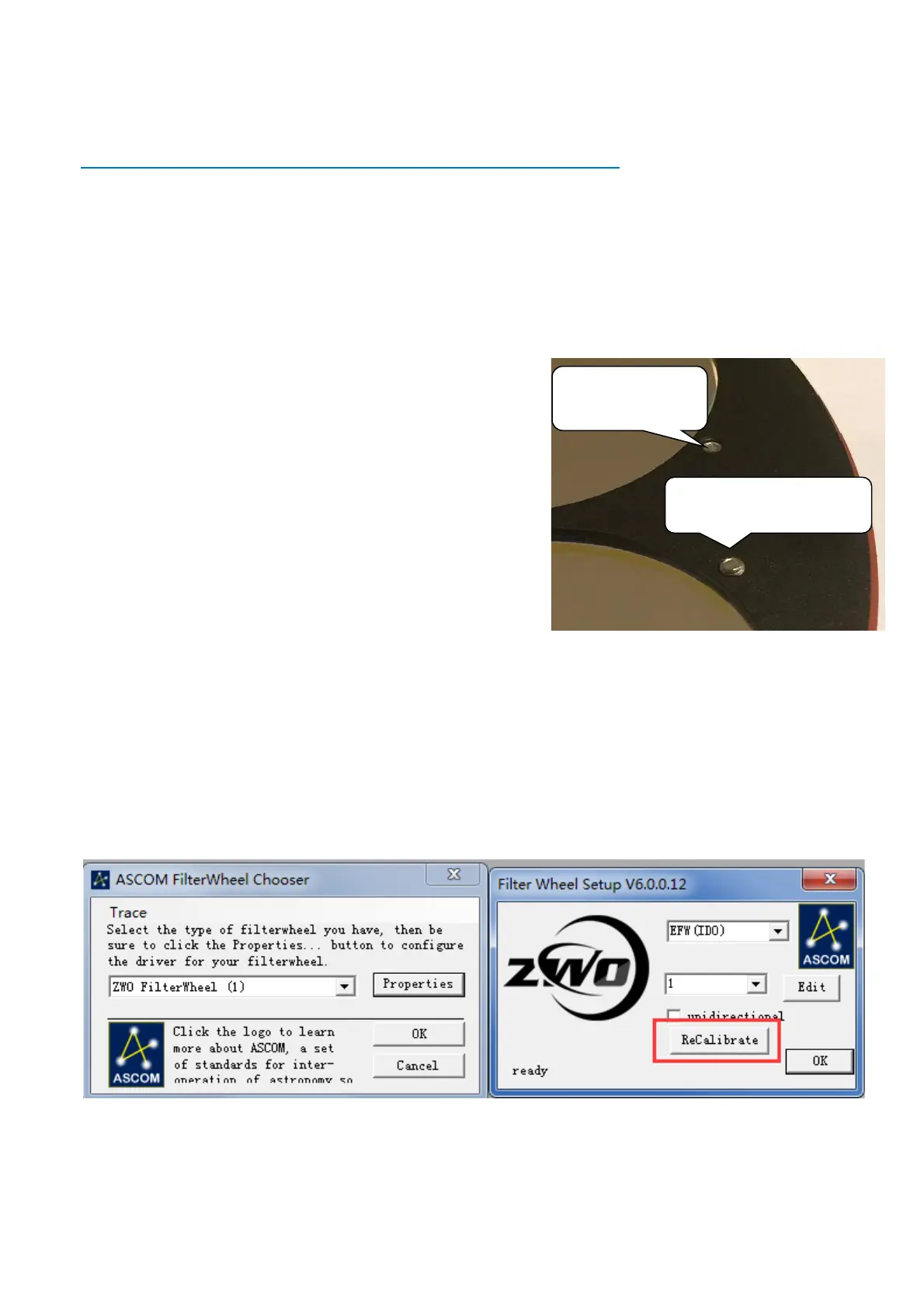 the ASCOM driver. Simply click "ReCalibrate" in ASCOM driver interface. It