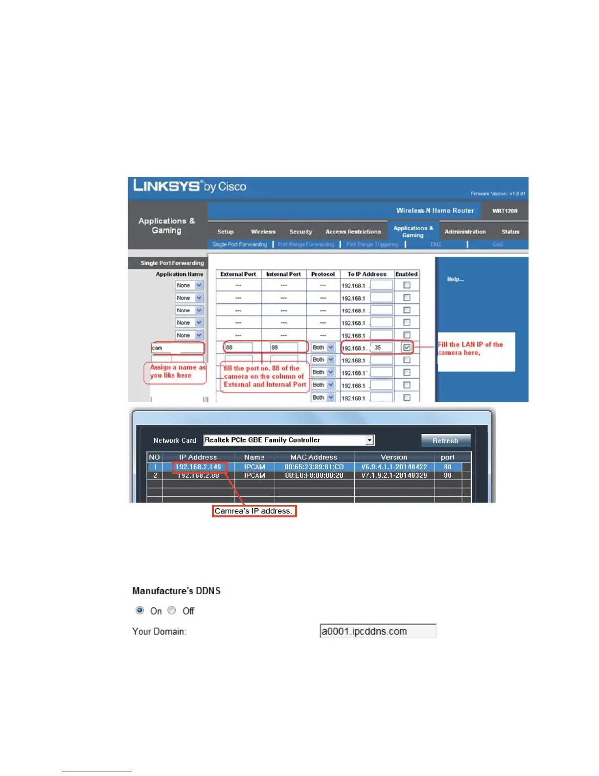 1) After doing port forwarding successful, you can also visit camera by DDNS. The
