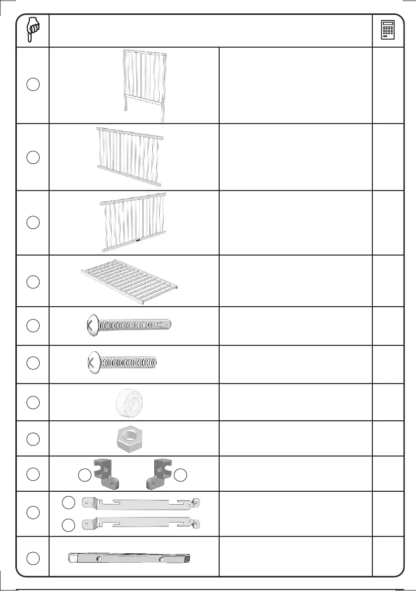 ZY Baby CUNA BASIC - Cot Components and Tools; Component Identification