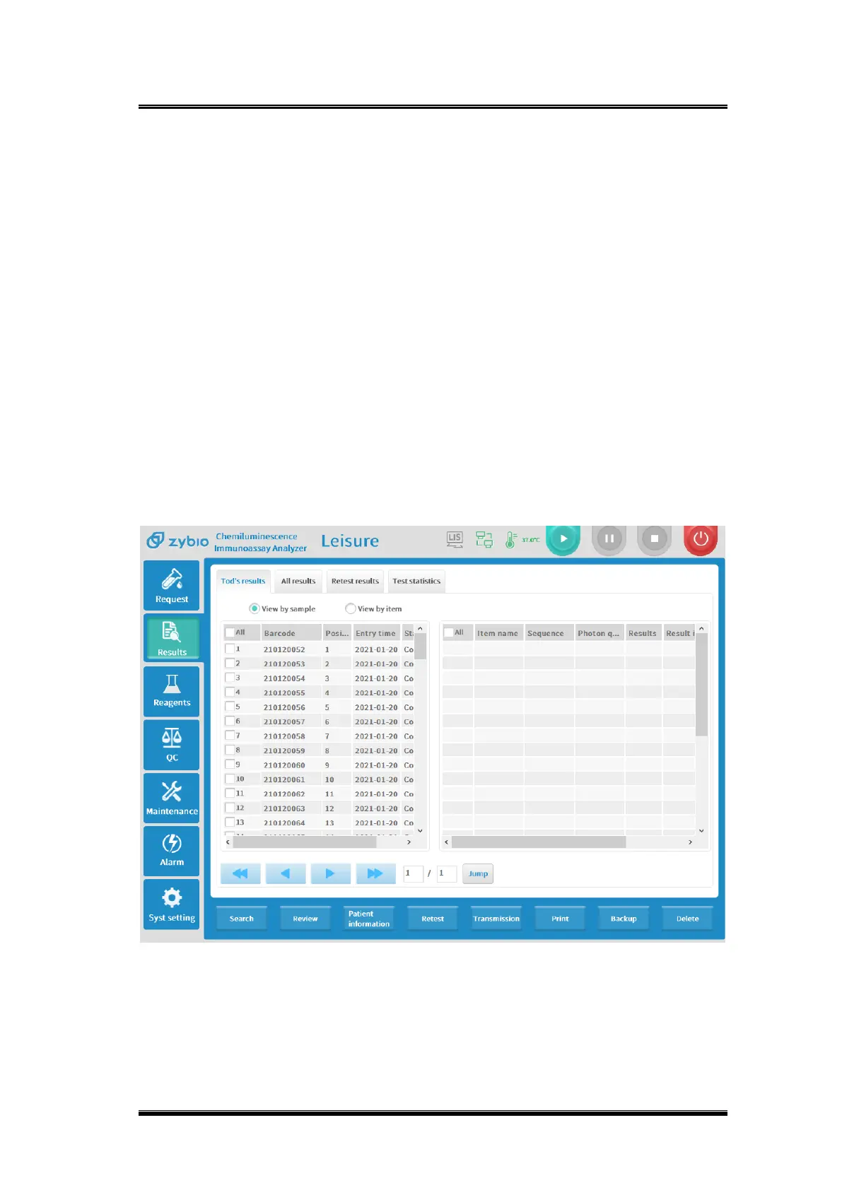 [Today’s Results] and [All Results] can be viewed by sample or item, as the figure below: