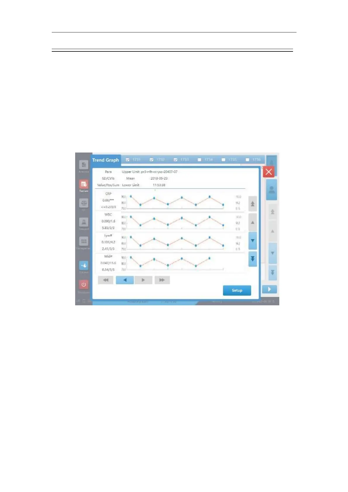 Tap the "Setup" button on the trend graph screen to enter the parameter limit setup screen (as shown