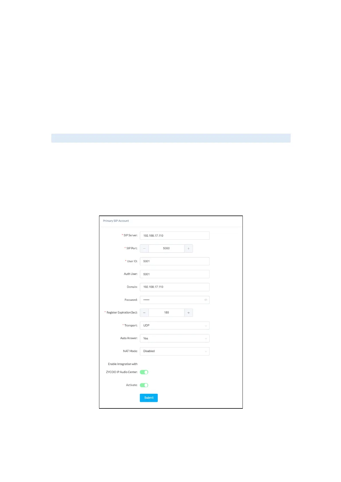 Please go to SIP Settings -> Primary SIP Account / Secondary SIP Account-1 / Secondary SIP
