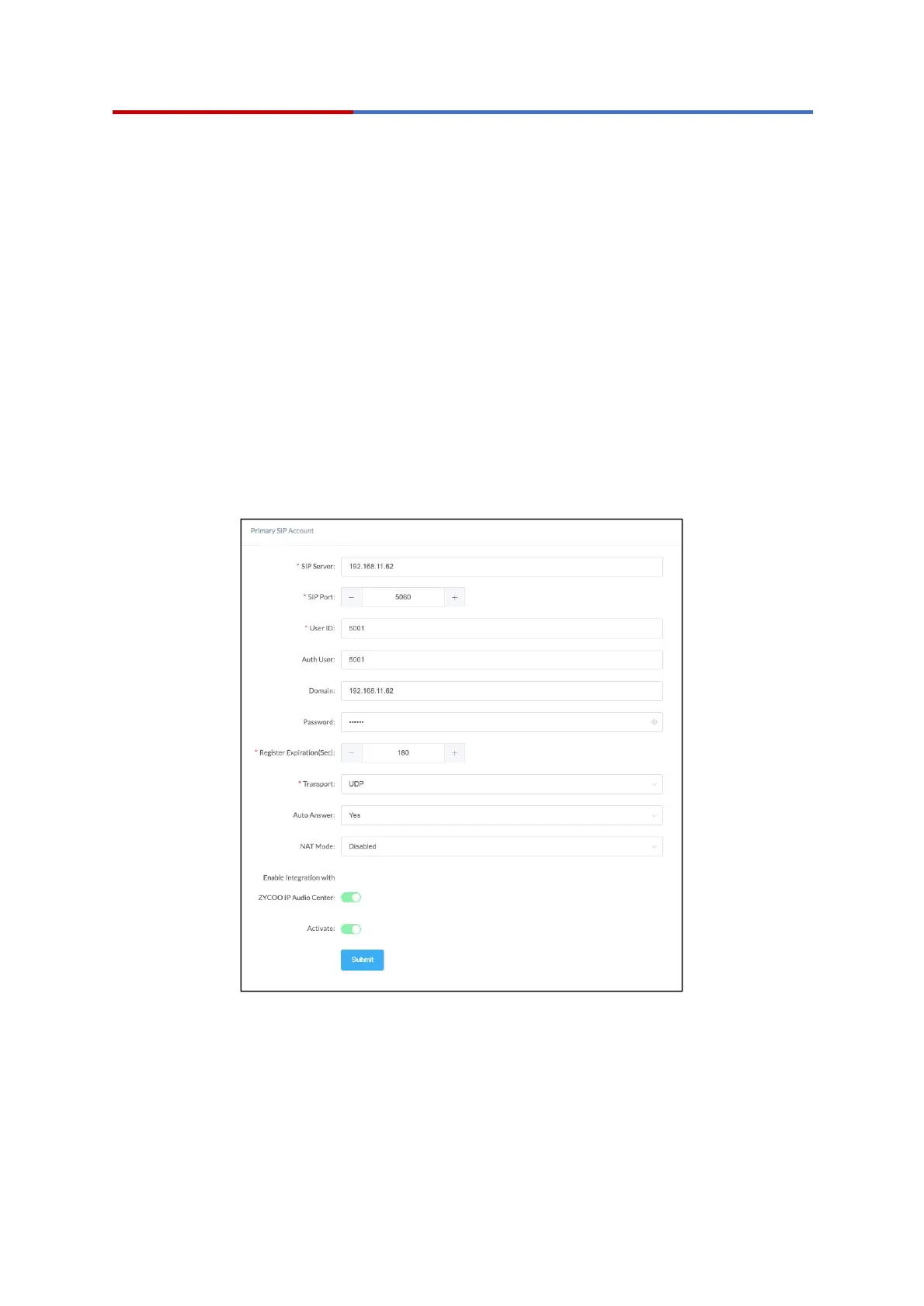Please go to SIP Settings --> Primary SIP Account / Secondary SIP Account-1 /