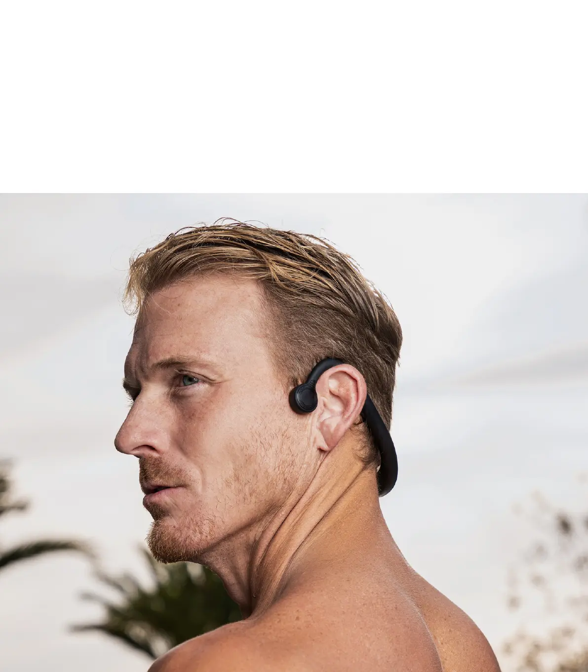 The headset uses bone conduction.