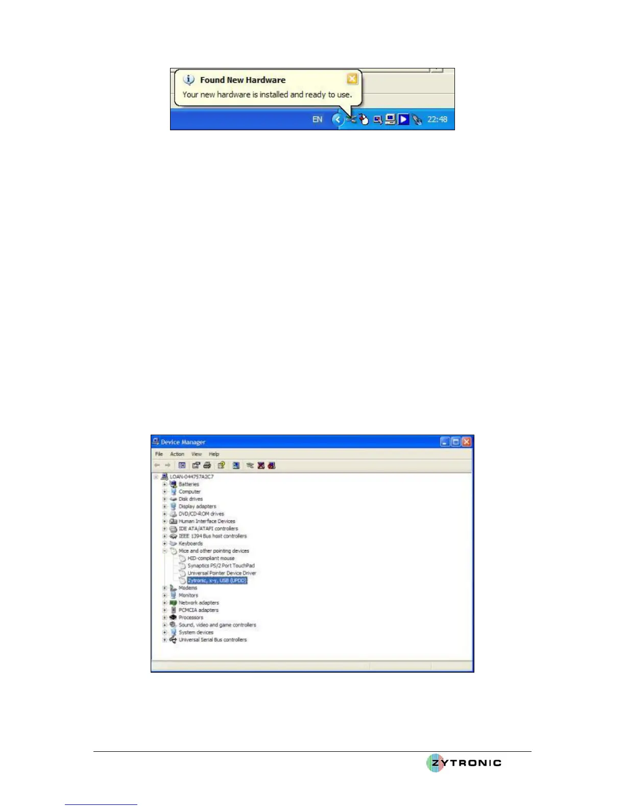 Figure 23: Zytronic, x-y, USB (UPDD) device listed within the Windows Device Manager