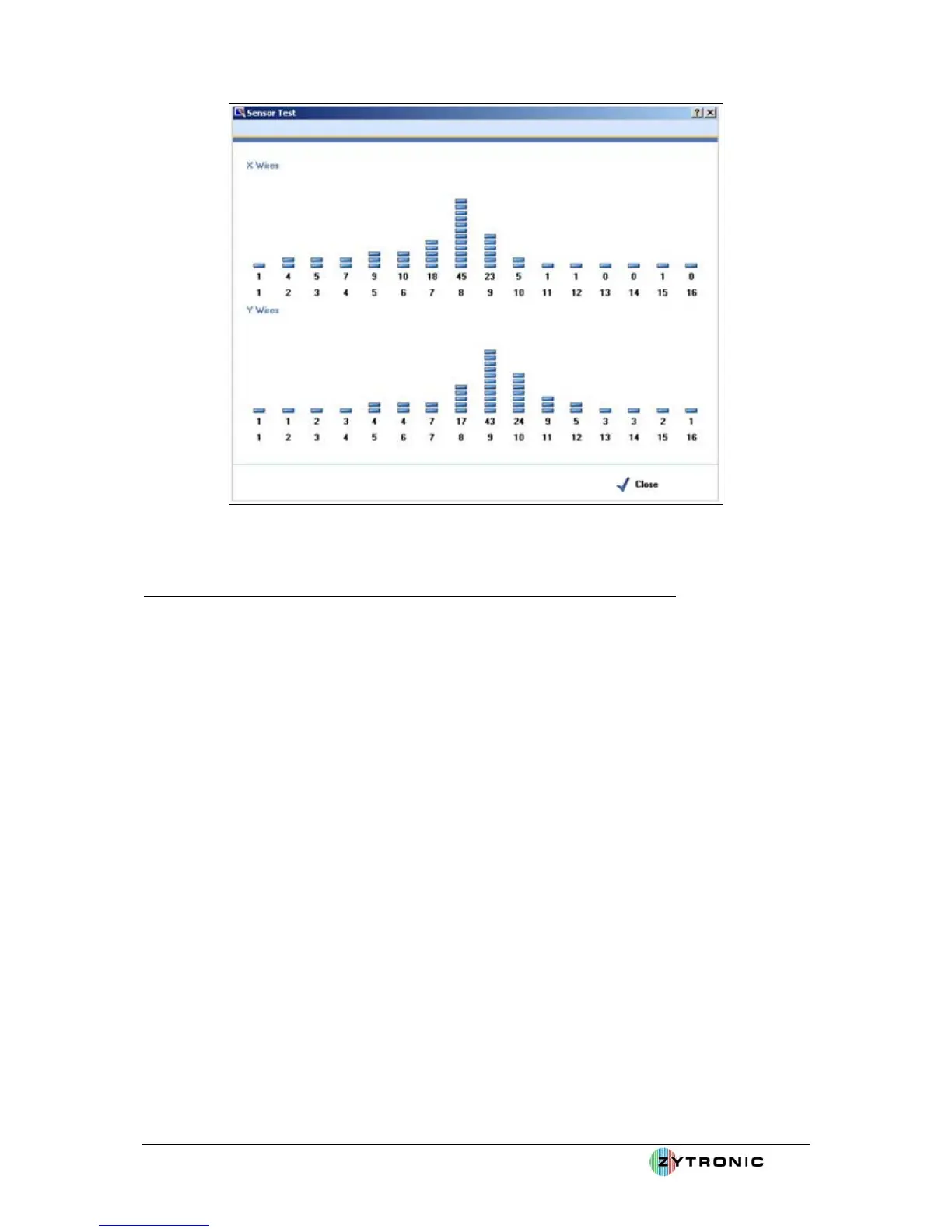 Figure 26: Sensor Test Page with wire level peaks as a result on an applied touch