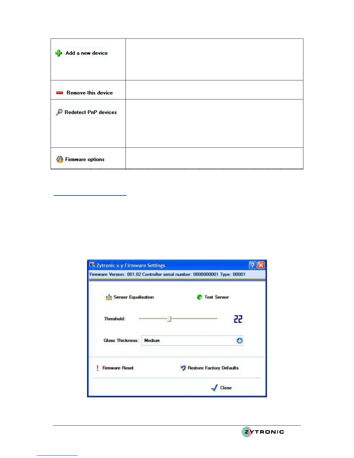 This firmware page describes the firmware options for the Zytronic, X-Y controllers