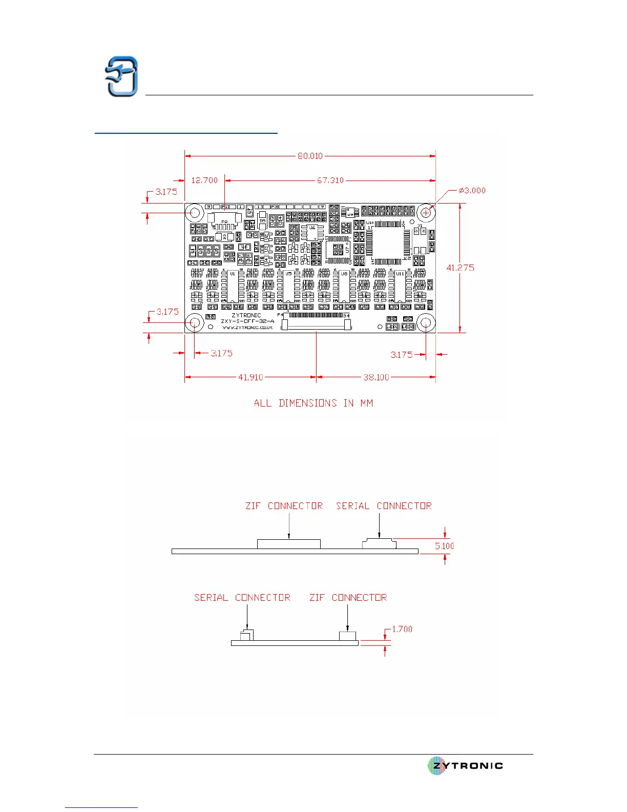 Zytronic Projected Capacitive X-Y controller Touchscreen - 8 Appendix A: Controller Pcb Card Dimensions; Serial ZXY-S-OFF-32-A Controller