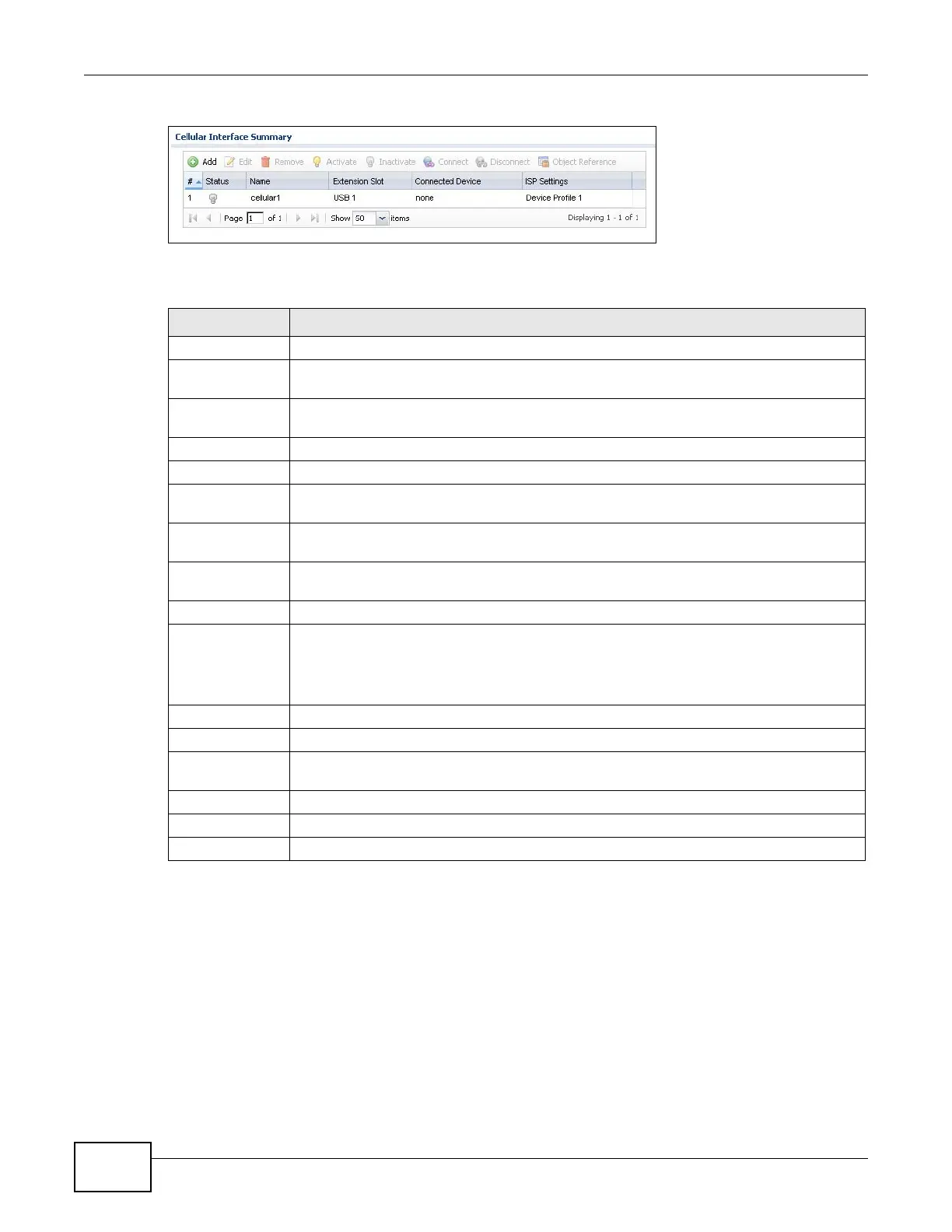 ISP Settings This field displays the profile of ISP settings that this cellular interface is set to use.