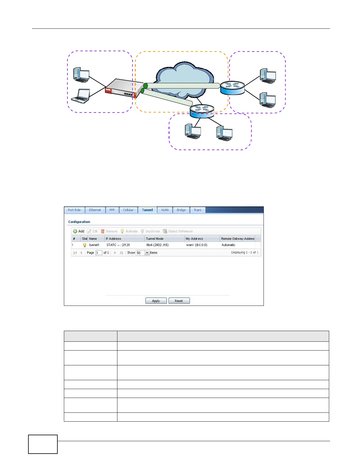 This screen lists the ZyWALL’s configured tunnel interfaces. To access this screen, click Network >
