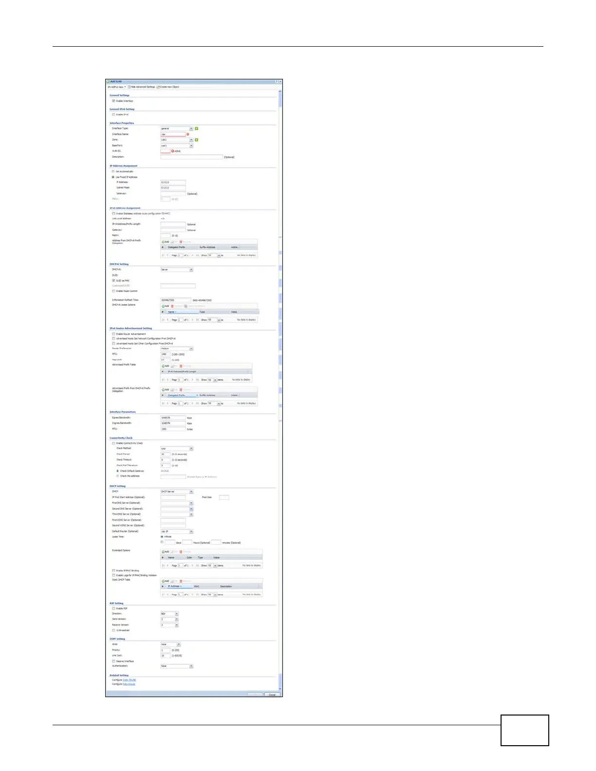 Figure 95 Configuration > Network > Interface > VLAN > Create Virtual Interface