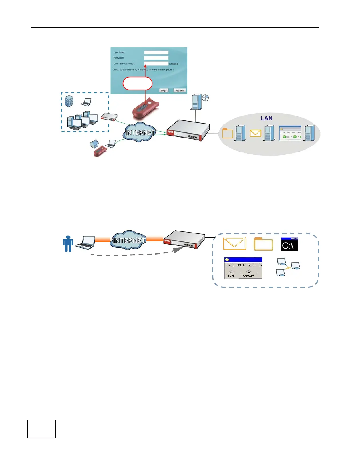 to the ZyWALL’s network. Here full tunnel mode creates a virtual connection for a remote user and