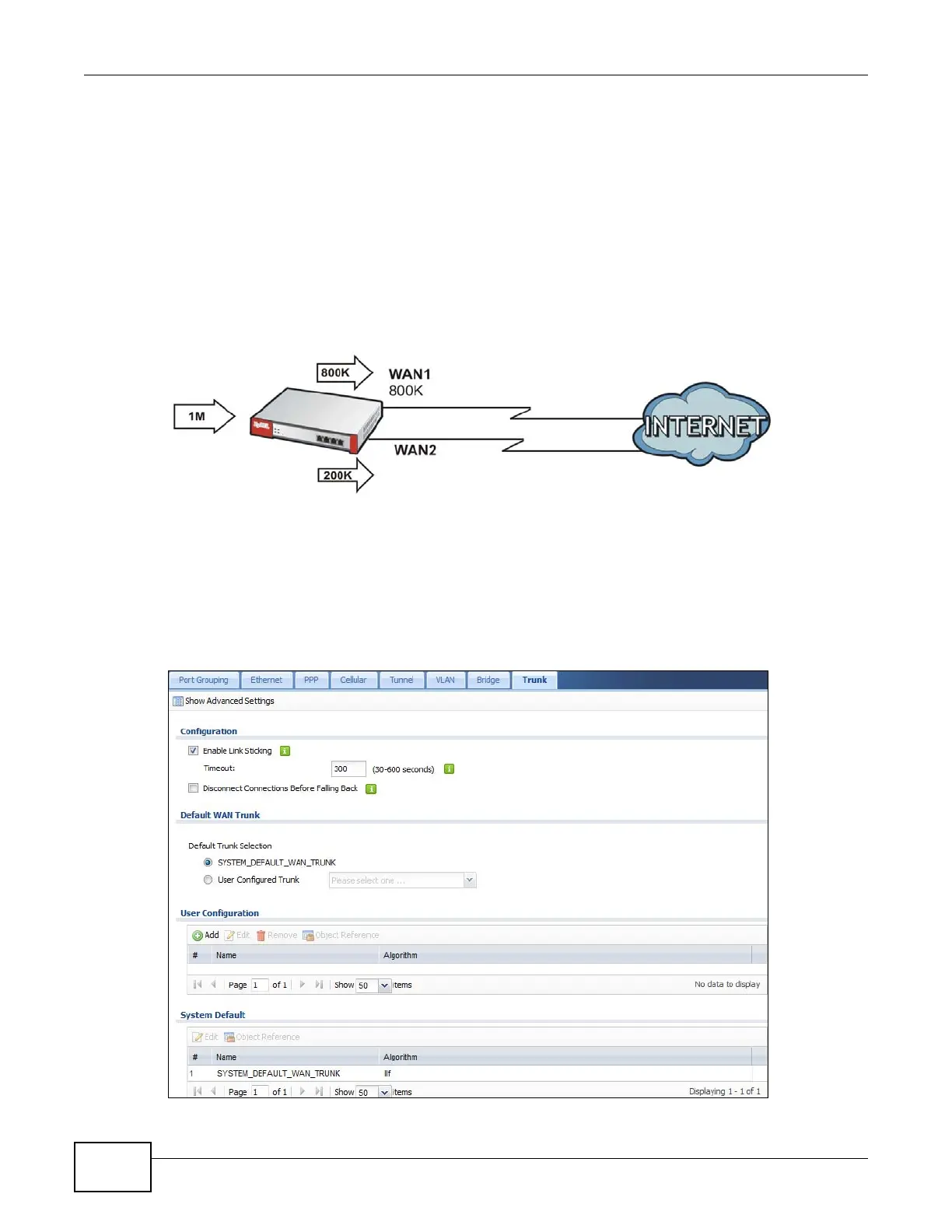 Click Configuration > Network > Interface > Trunk to open the Trunk screen. This screen lists