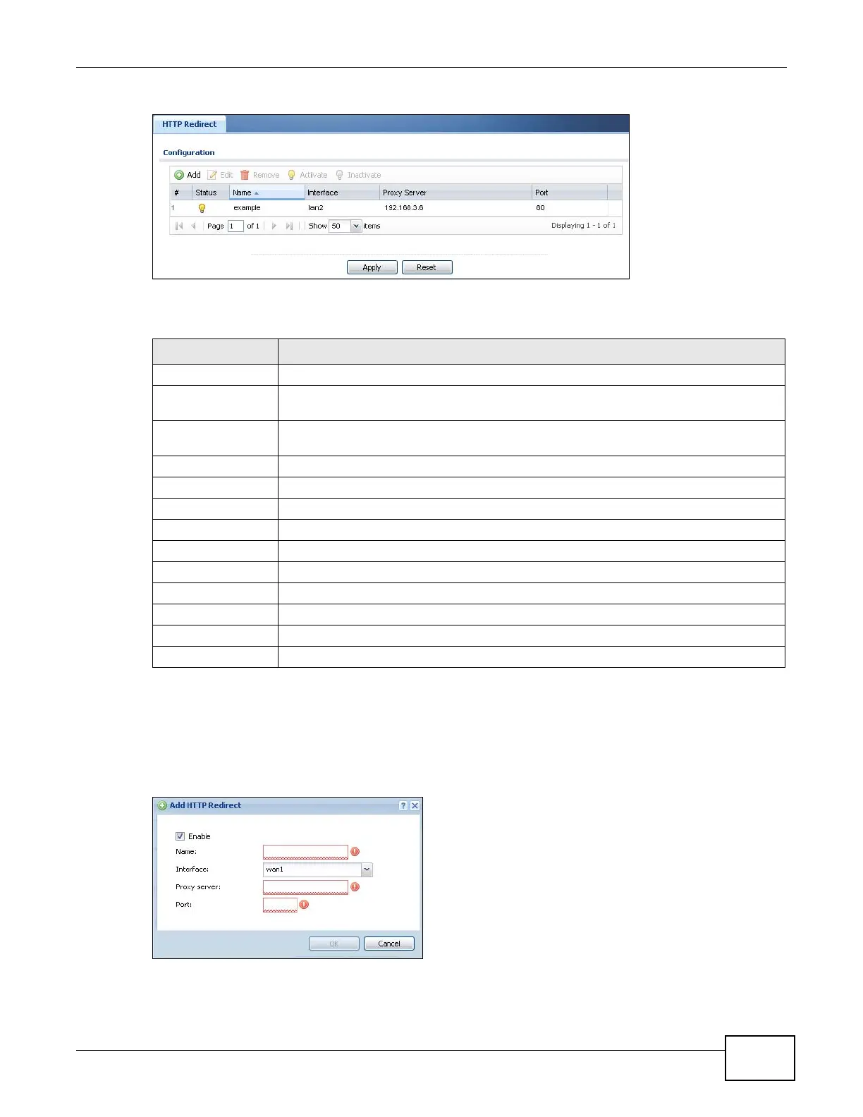 Click Network > HTTP Redirect to open the HTTP Redirect screen. Then click the Add or Edit
