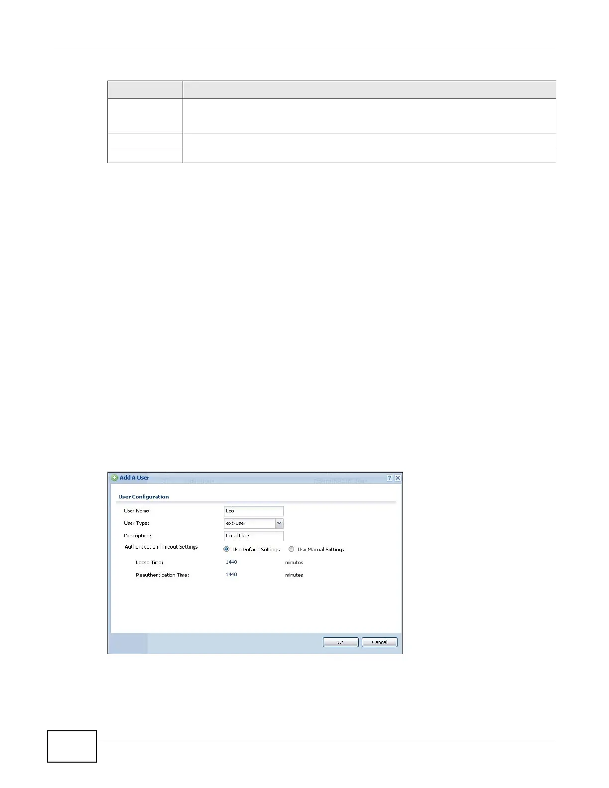 OK Click OK to save your changes back to the ZyWALL.