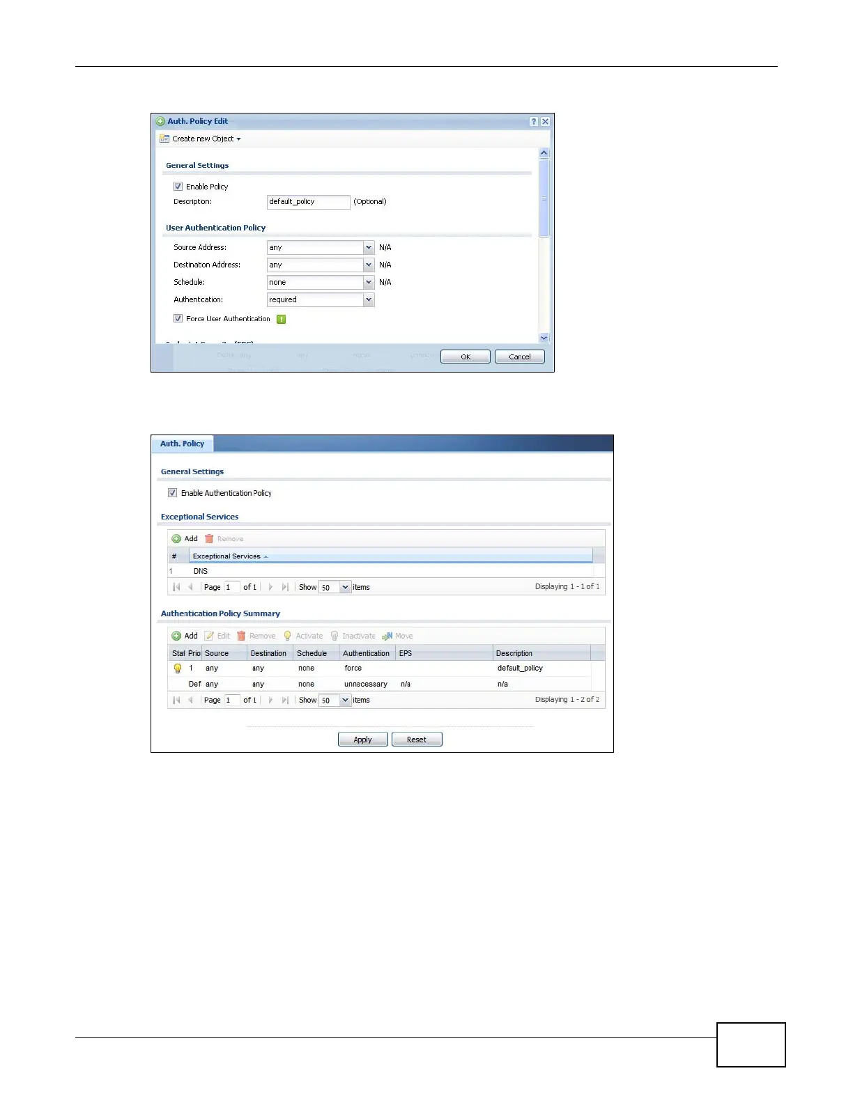 Figure 158 Configuration > Auth. Policy