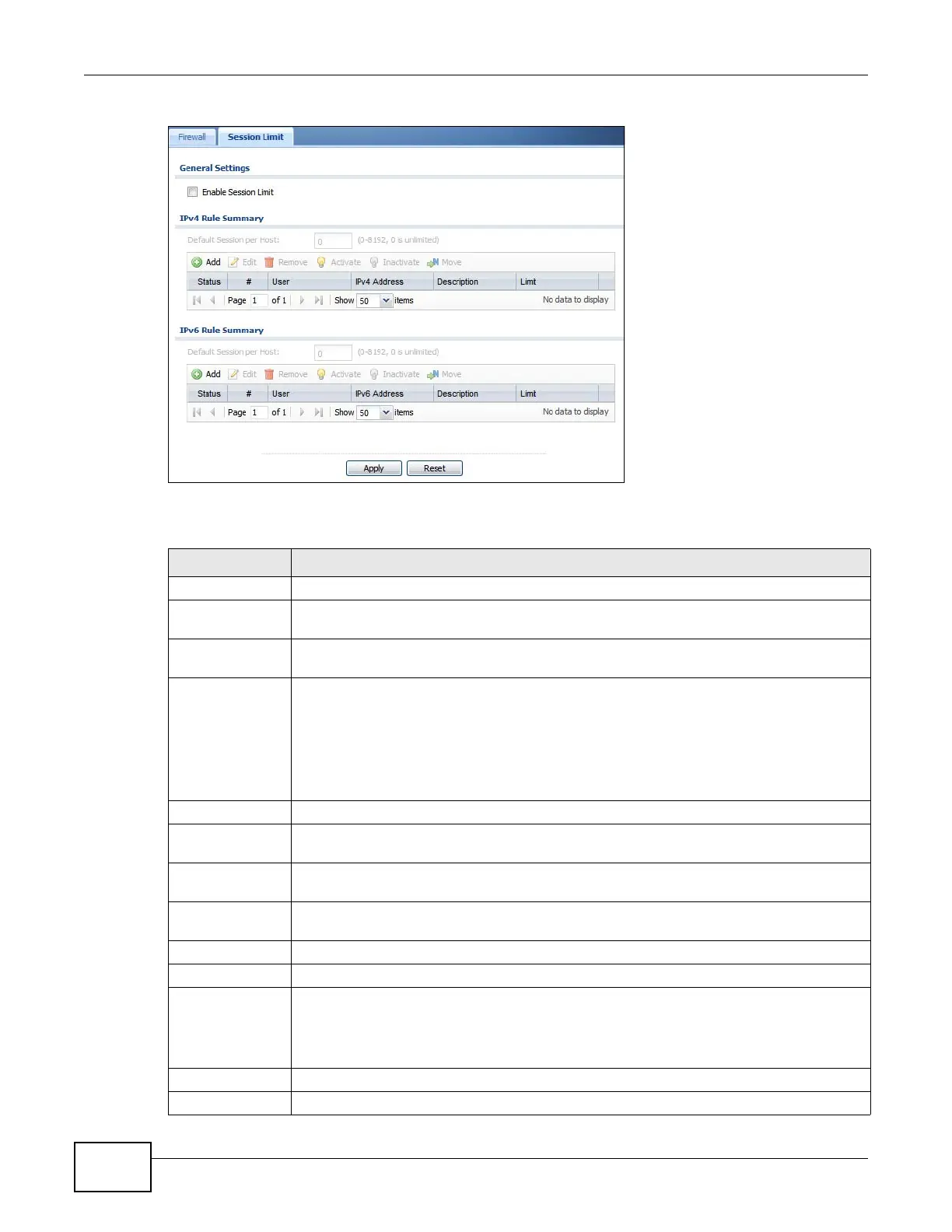 Rule Summary This table lists the rules for limiting the number of concurrent sessions hosts can have.
