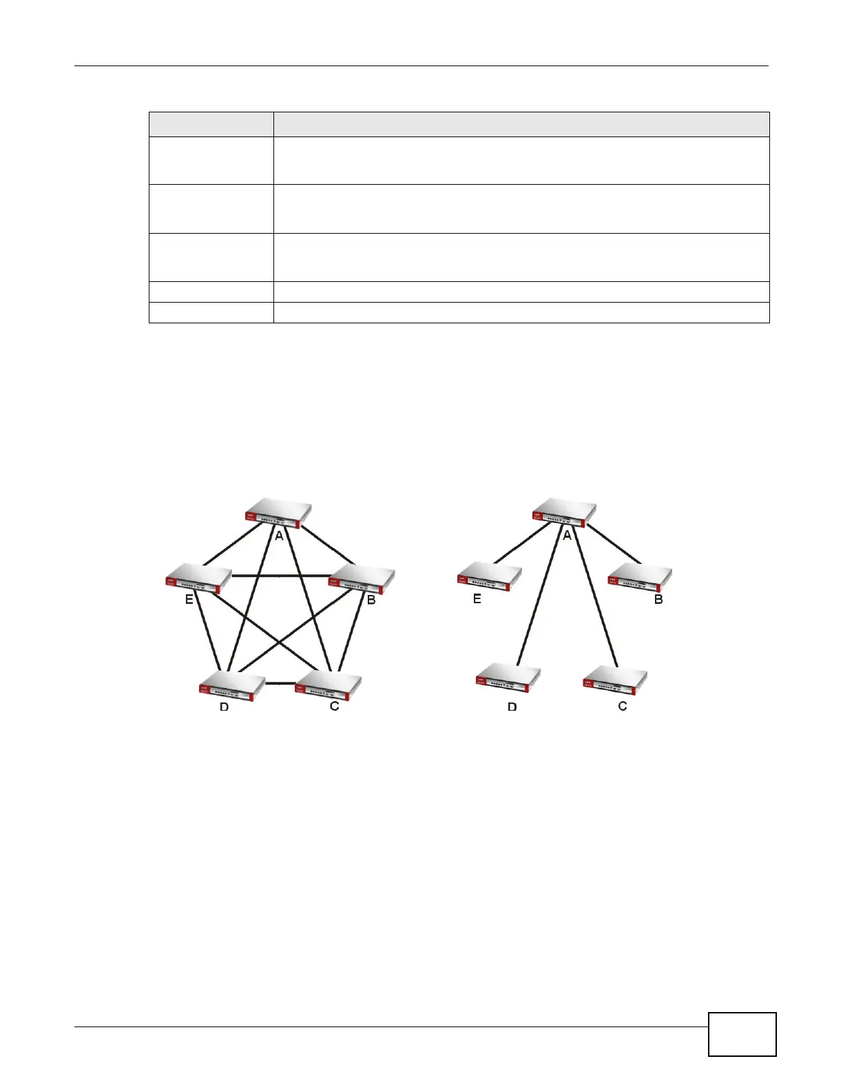 Figure 183 VPN Topologies (Fully Meshed and Hub and Spoke)