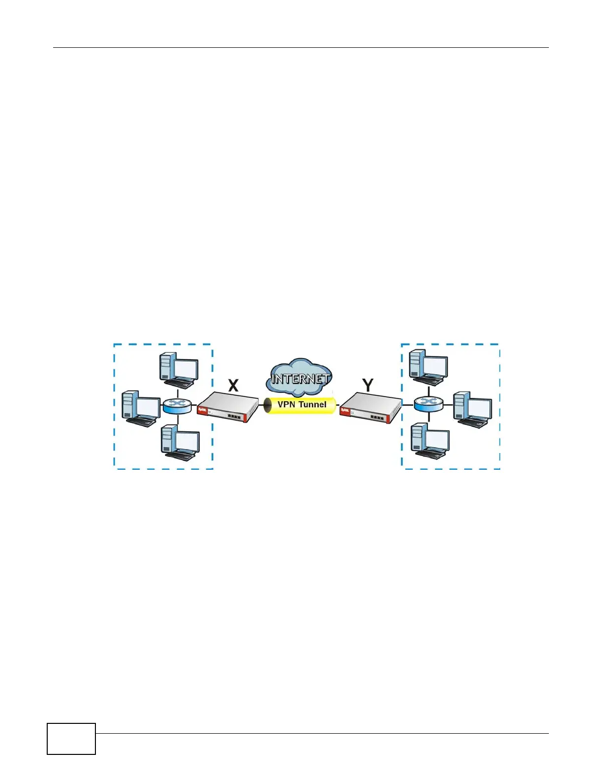 ZyWALL X uses 1.2.3.4 as its public address, and remote IPSec router Y uses 2.2.2.2. Create the