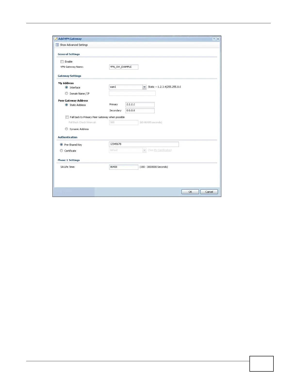 2 Enable the VPN connection and name it (“VPN_CONN_EXAMPLE”). Set VPN Gateway to Site-to-