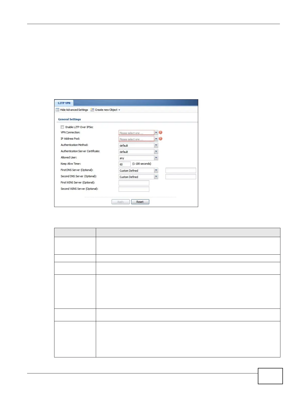 Table 122 Configuration > VPN > L2TP VPN