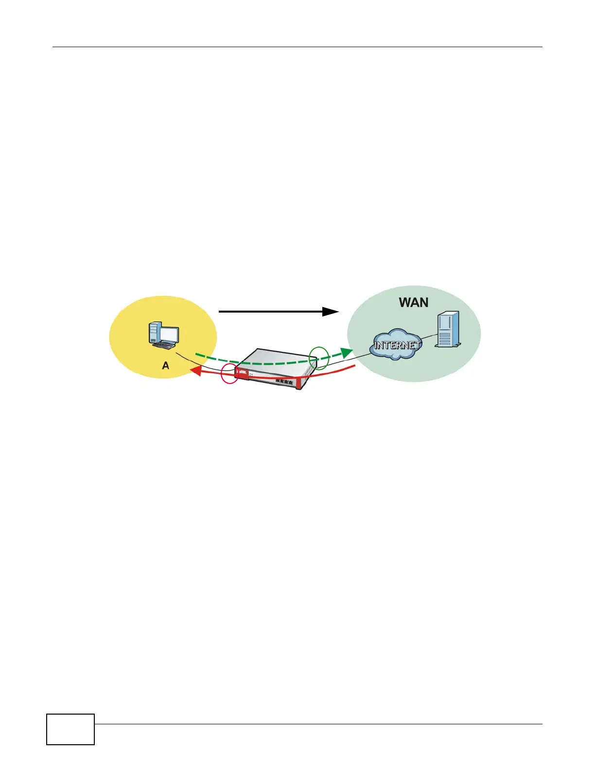For example, a LAN1 to WAN connection is initiated from LAN1 and goes to the WAN.