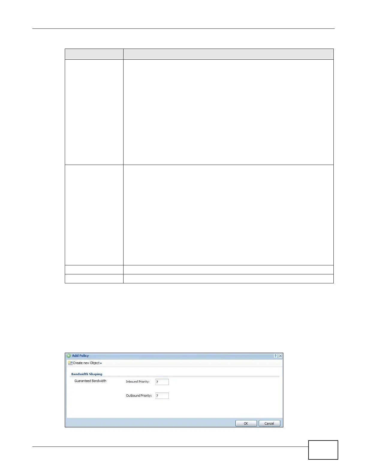 Table 127 Configuration > Bandwidth Management