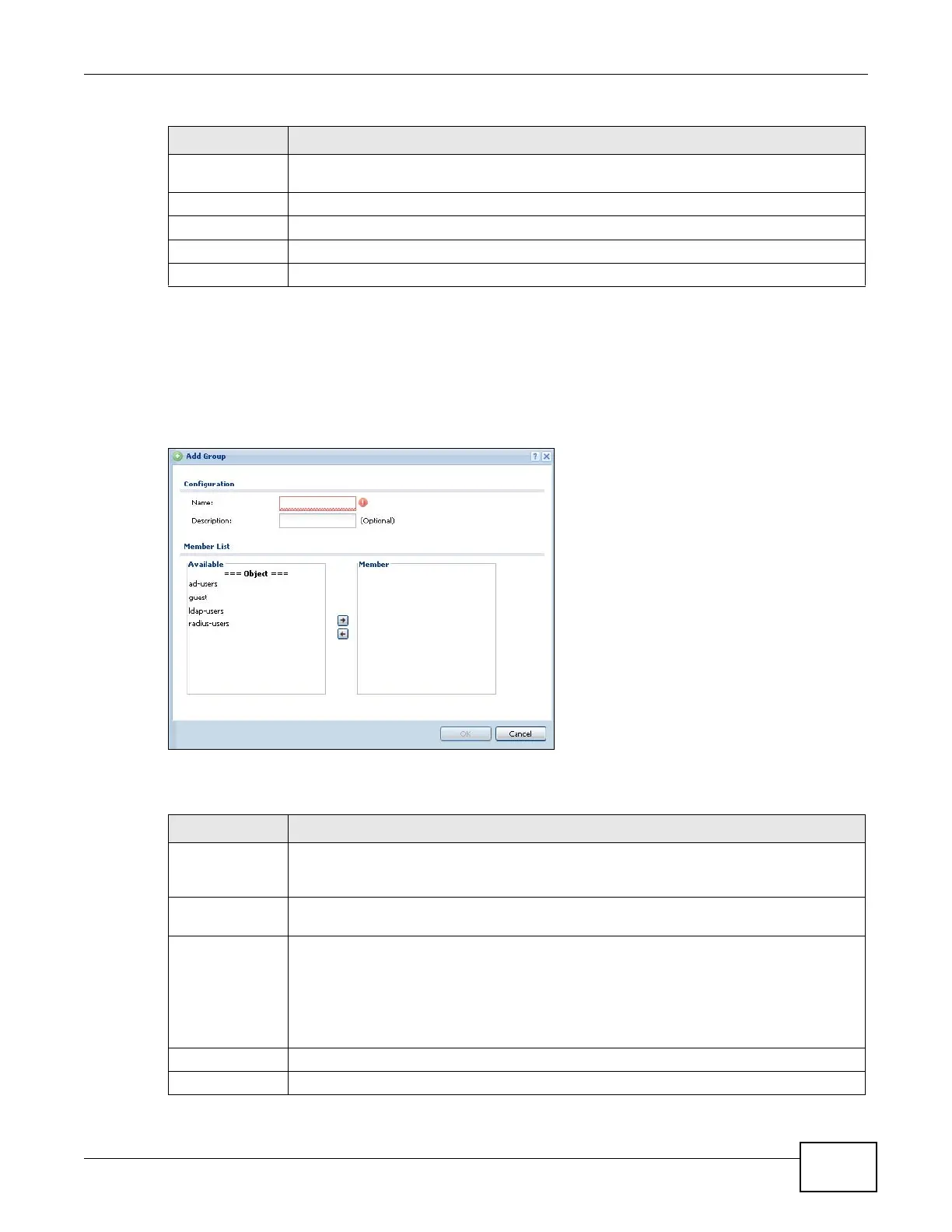 Table 136 Configuration > User/Group > Group > Add