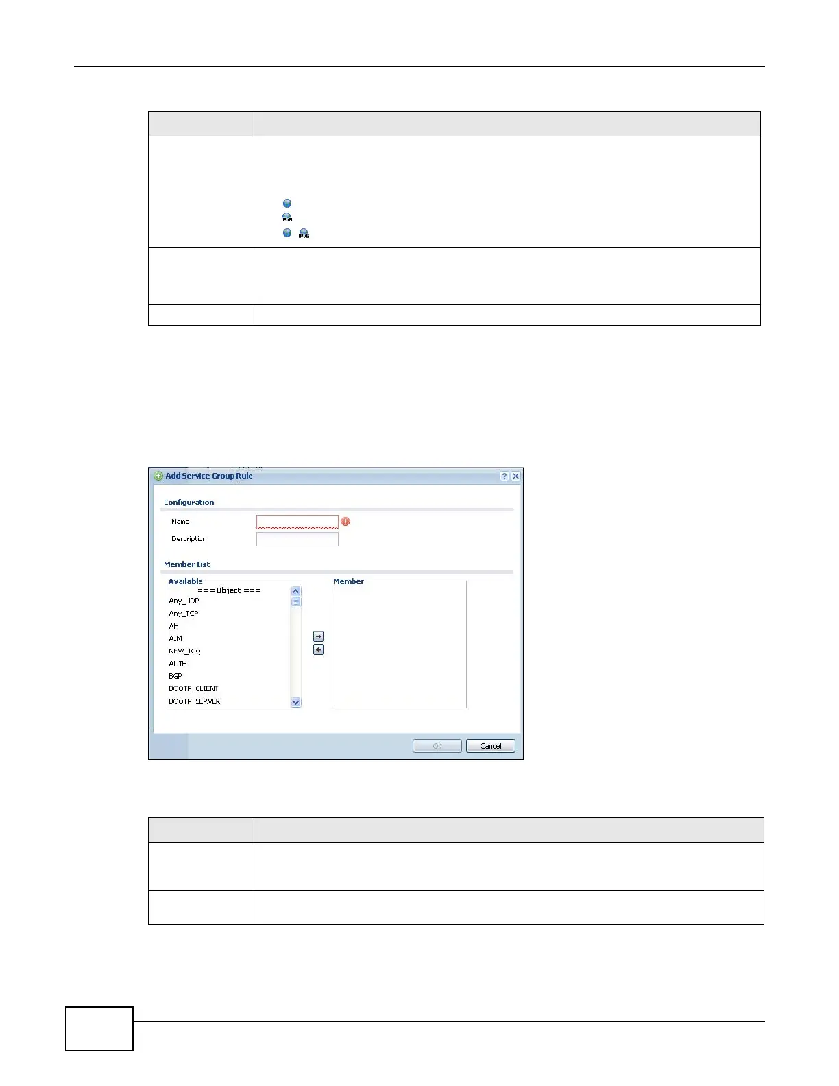 Table 148 Configuration > Object > Service > Service Group (continued)