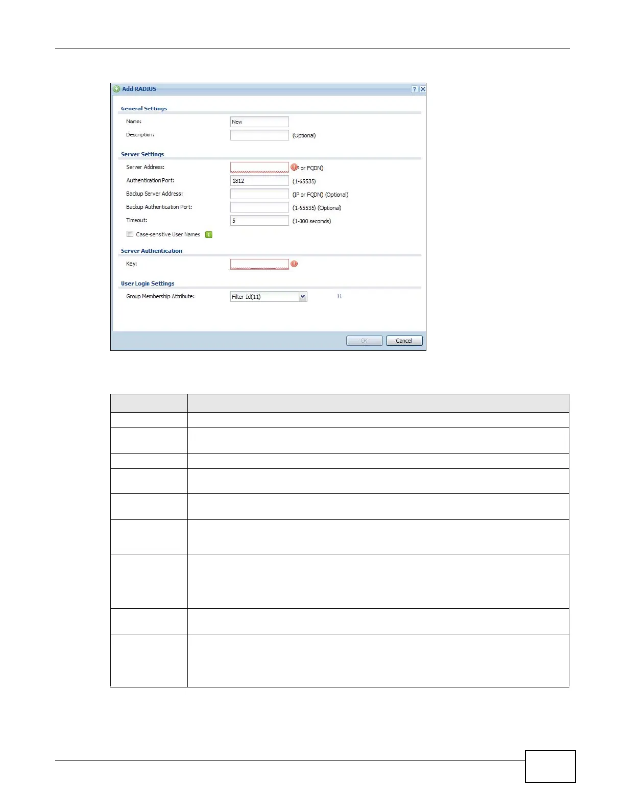 Table 156 Configuration > Object > AAA Server > RADIUS > Add