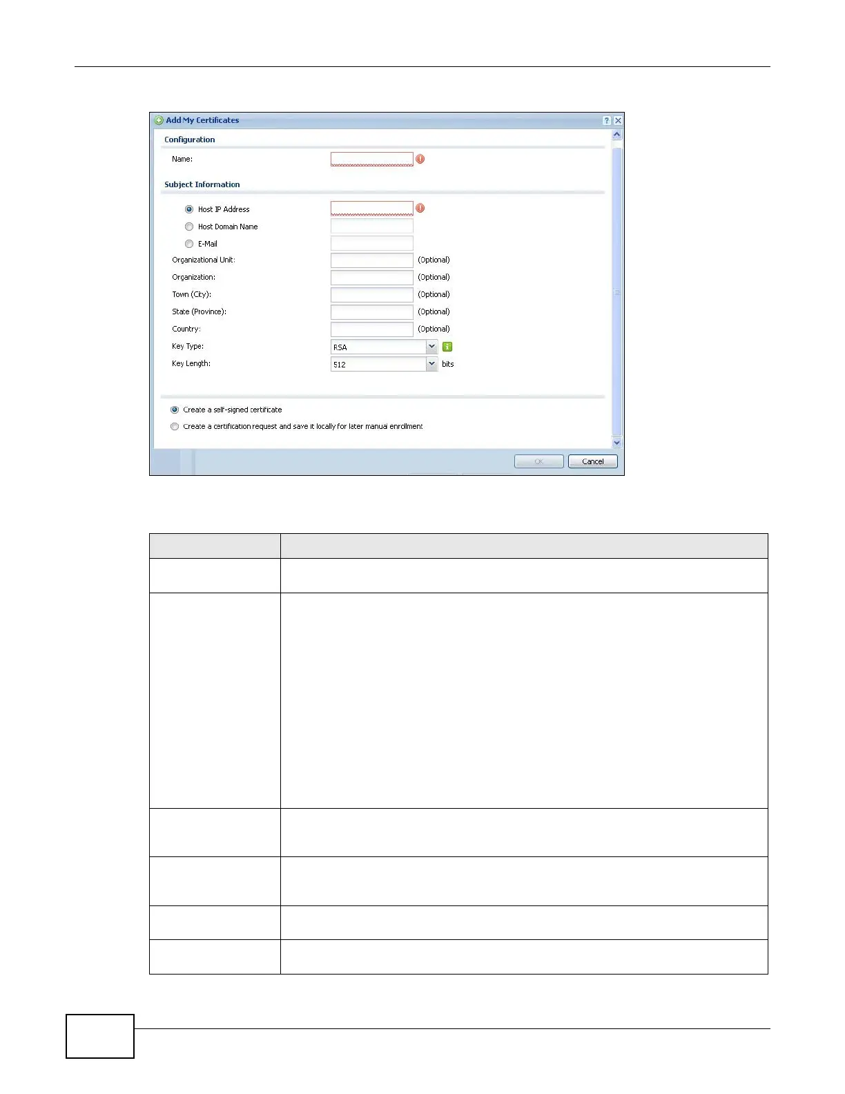 Table 160 Configuration > Object > Certificate > My Certificates > Add