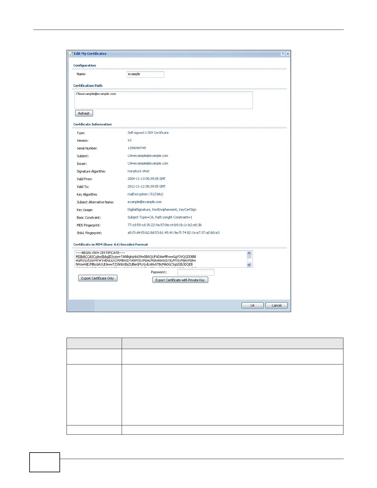 Table 161 Configuration > Object > Certificate > My Certificates > Edit