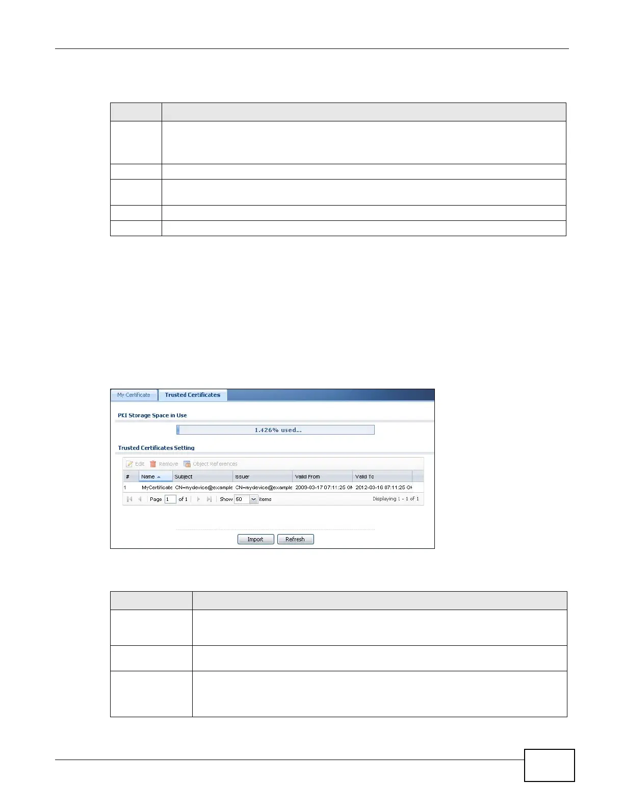 Table 163 Configuration > Object > Certificate > Trusted Certificates