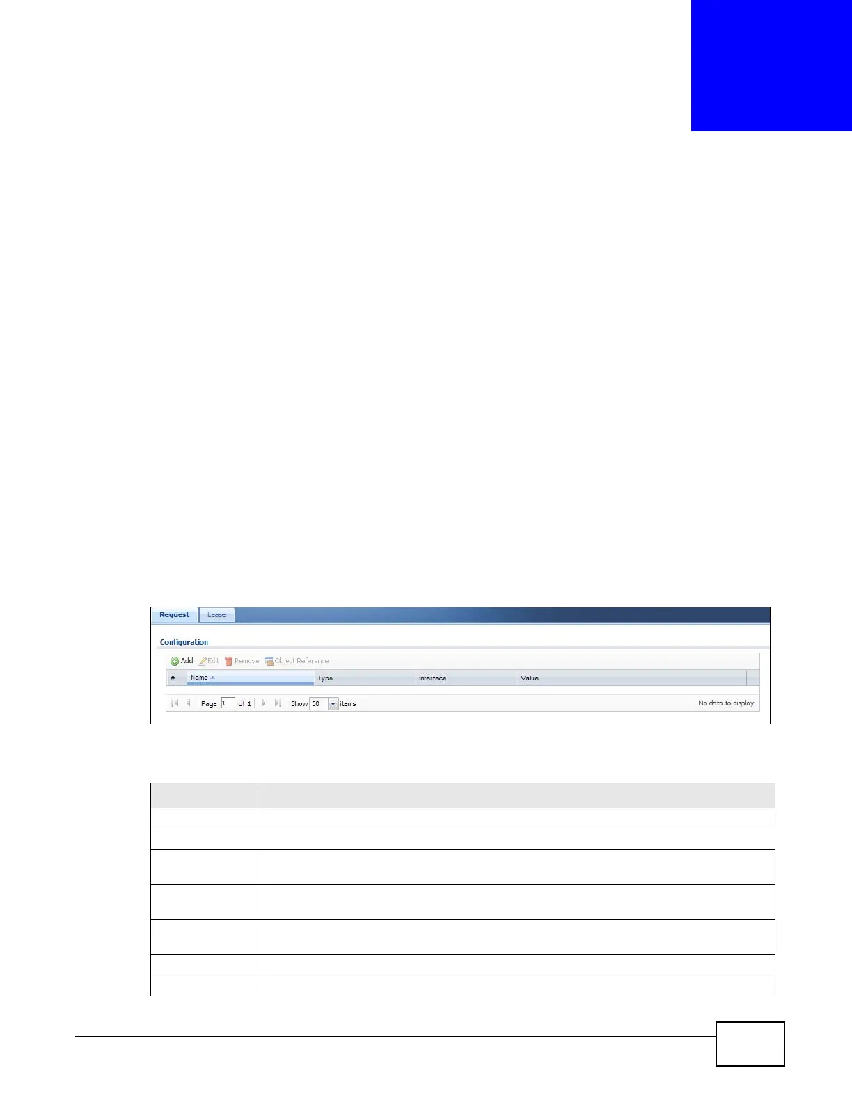 •The Request screen (see Section 27.2 on page 373) allows you to configure DHCPv6 request