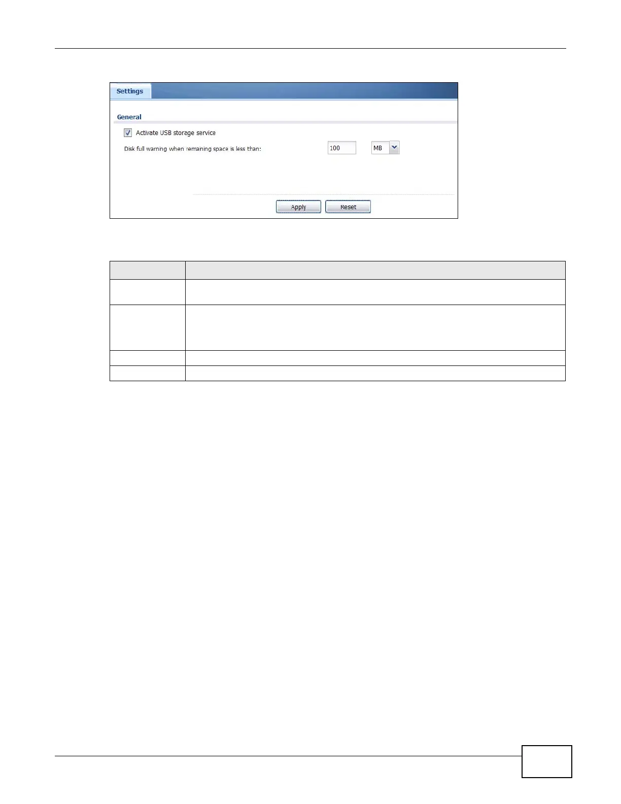 Set a number and select a unit (MB or %) to have the ZyWALL send a warning message